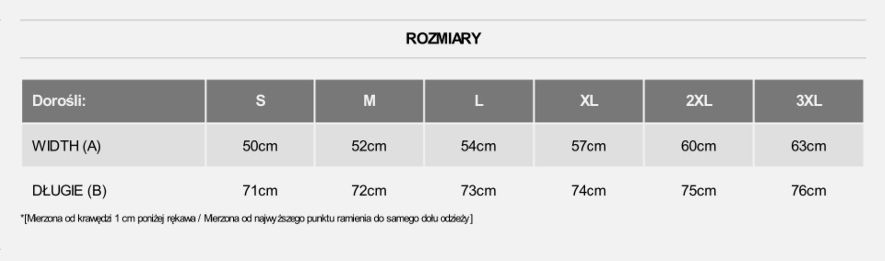 | Rozmiar | XS, S, M, L, XL, 2XL, 3XL |