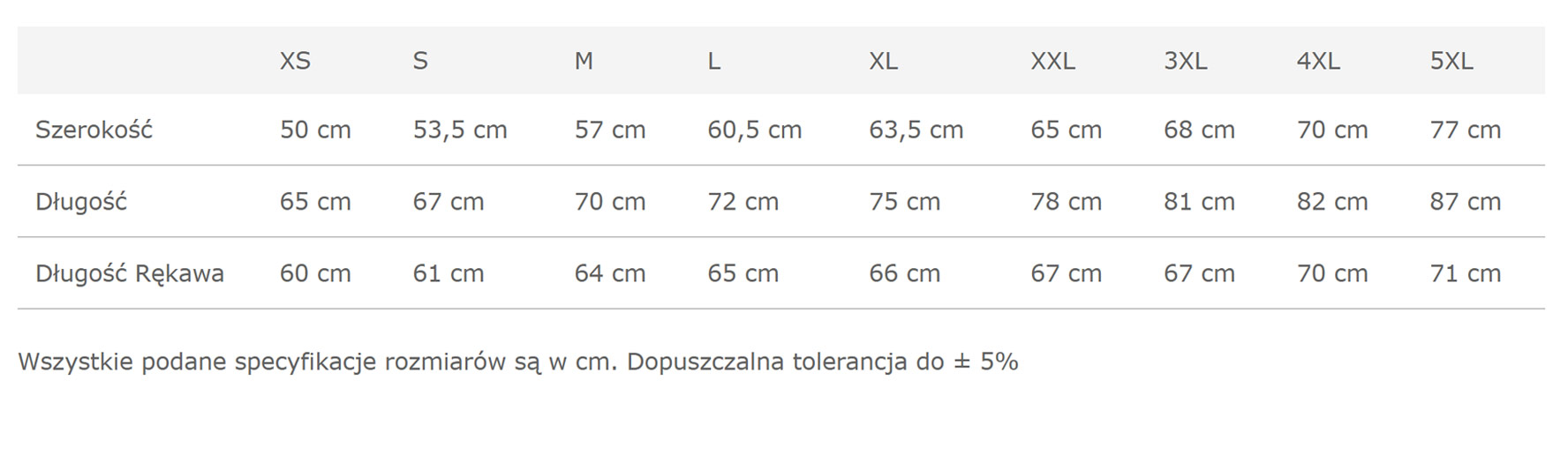 • Rozmiary: XS – 5XL